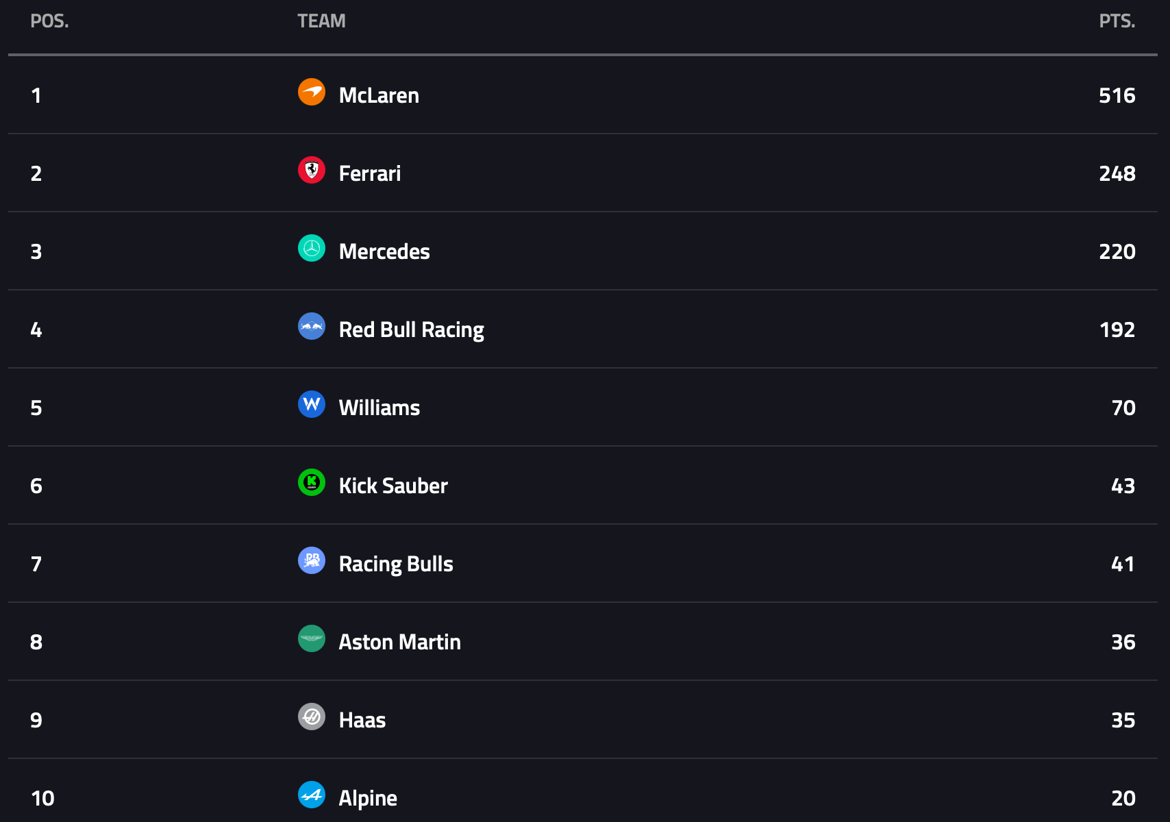2025 Constructor's Standings