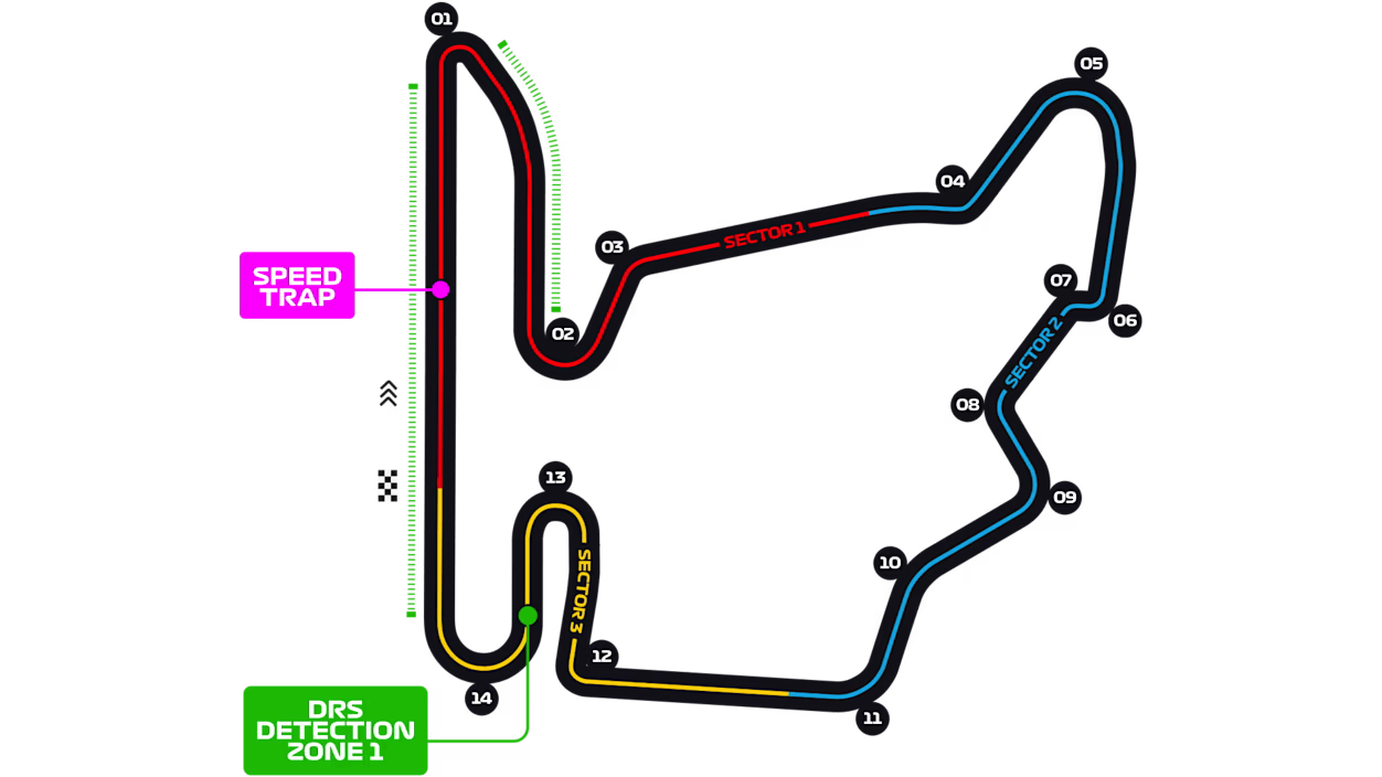 - DRS 존: 2개 (T14 ~ T1 메인스트레이트 / T1 ~ T2 짧은 내리막 직선)