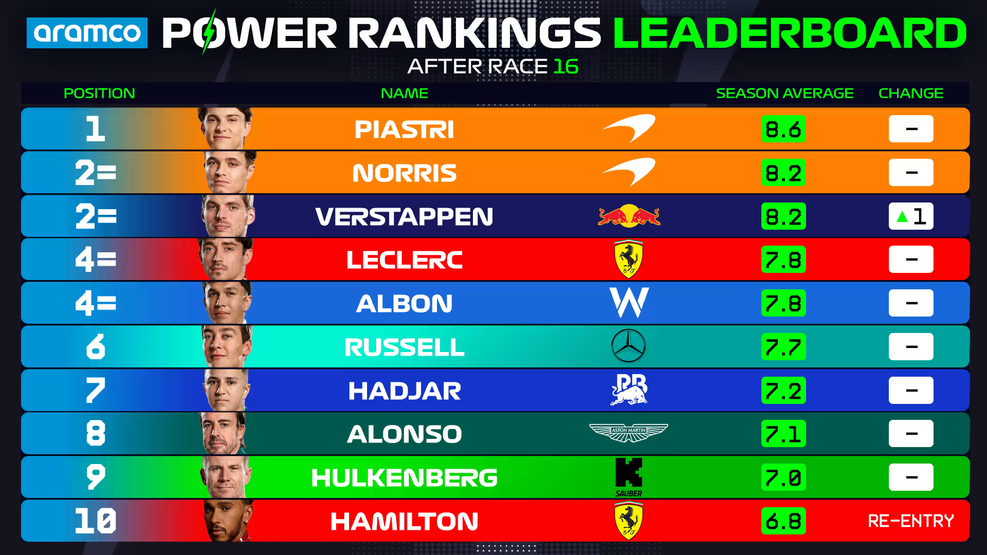 F1 2025 이탈리아 그랑프리, Round 16 드라이버 순위